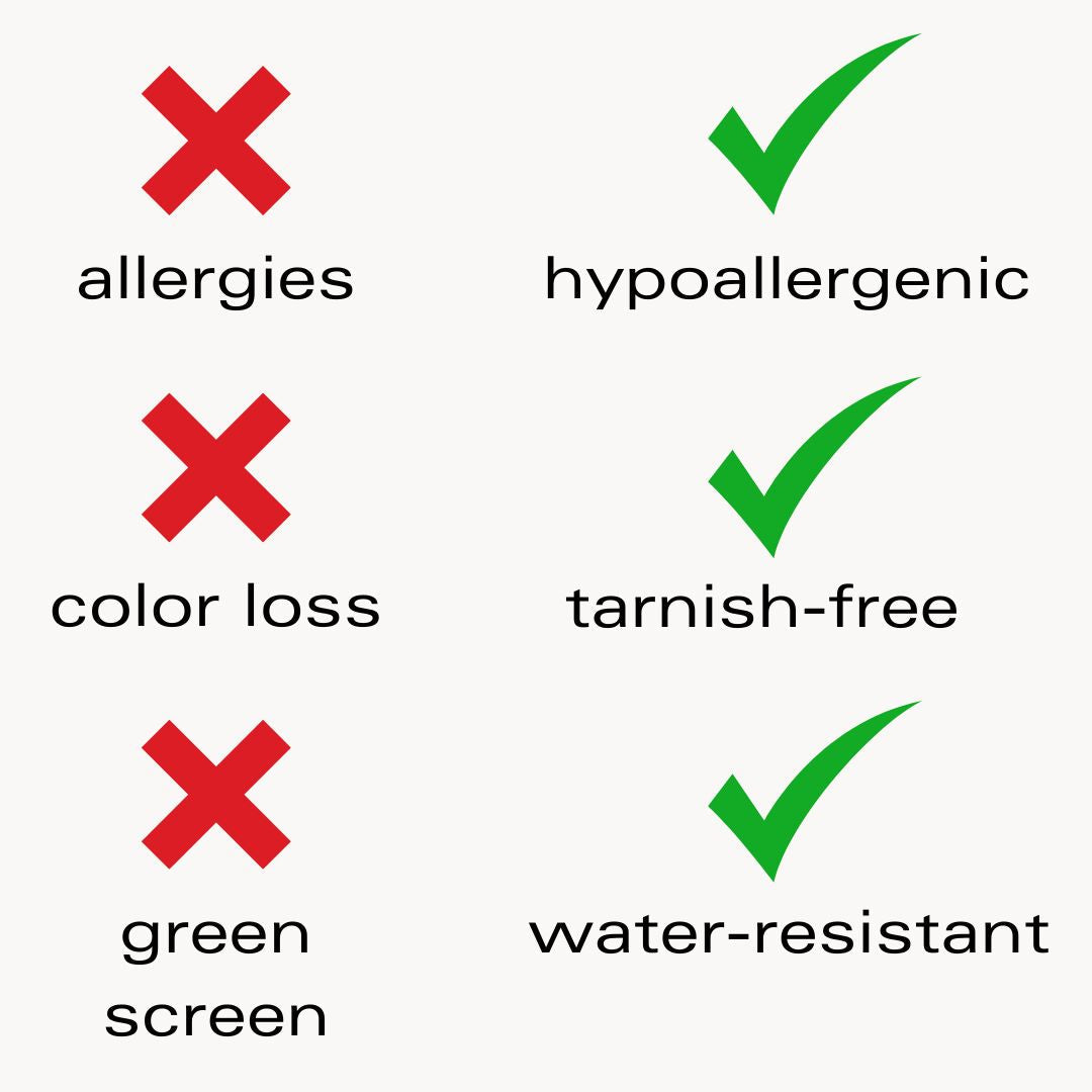 Tutti gli articoli sono realizzati in acciaio inossidabile di alta qualità e non sono placcati in oro. Sono resistenti, durevoli e ideali per l’uso quotidiano.